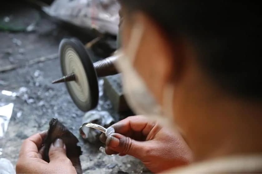 Bali ist für Schmiedekunst bekannt und Raphael und ich lieben Indonesien. Durch einen Tipp von Raphaels Bruder sind wir auf eine Schmiedin in Ubud aufmerksam geworden. Ihr gefiel die Idee und sie wollte uns helfen. Also hieß es für uns ab nach Bali, um gemeinsam mit der Schmiedin unsere erste Kollektion fertigzustellen. Wir lassen auf Bali allerdings nur die Einzelteile für das Armband fertigen und bauen die Armbänder anschließend in München zusammen. In jedem Armband steckt daher sehr viel Handarbeit und jedes „pöf pöf“-Armband ist ein Unikat, weil eben auch jede Muschel unterschiedlich ist.