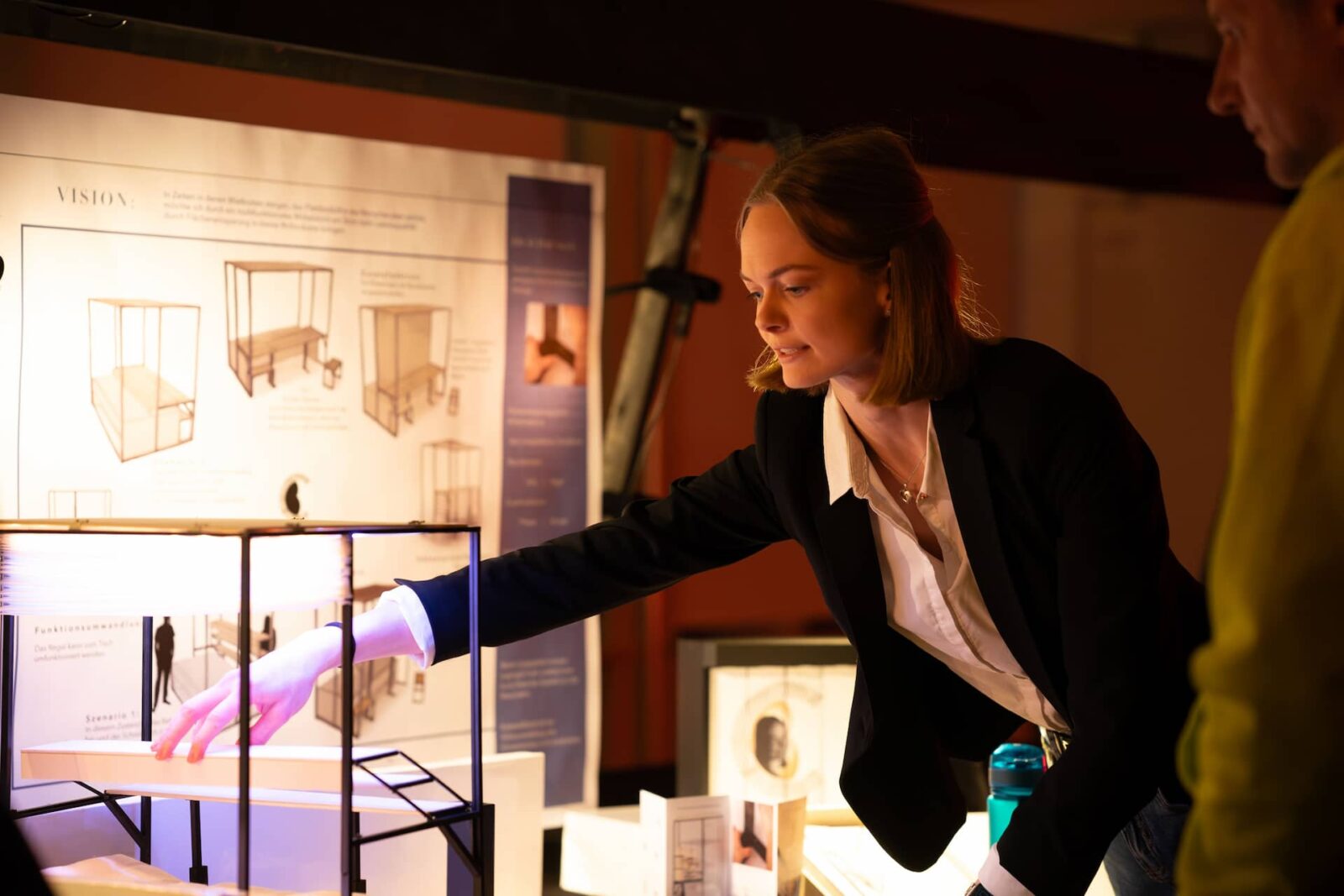 Darüber hinaus ist nachhaltiges Möbeldesign ein großes Thema unter unseren Studierenden, wie die Arbeiten mit wiederverwendeten Baustoffen verdeutlichten. Solche Projekte belegen das Engagement der Absolvent:innen für umweltbewusstes Design und soziale Verantwortung.
