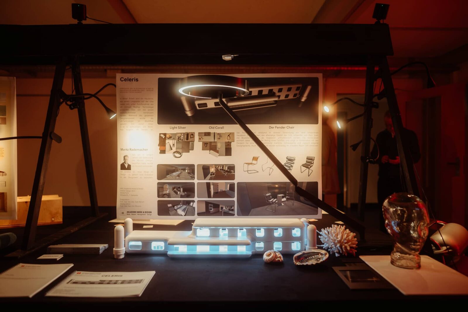 Hier seht ihr die „Celeris“ Bachelor-Arbeit aus dem Interior Design (B.A.) Sie präsentiert eine Zukunftsidee für ein Hausboot, begleitet von einer durchdachten Präsentation, die sogar ein Virtual-Reality-Erlebnis mit einem Rundgang durch das Hausboot umfasst.