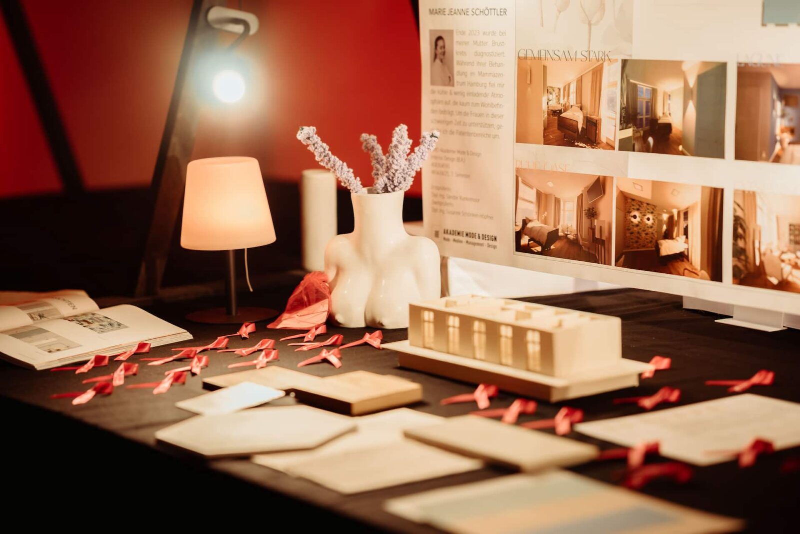 Die Gäste hatten die Gelegenheit, kreative Abschlussarbeiten aus den AMD-Studiengängen Industrie & Produktdesign, Interior Design, Innenarchitektur, Fashion Journalism & Communication, Mode Design sowie Mode & Designmanagement zu entdecken.