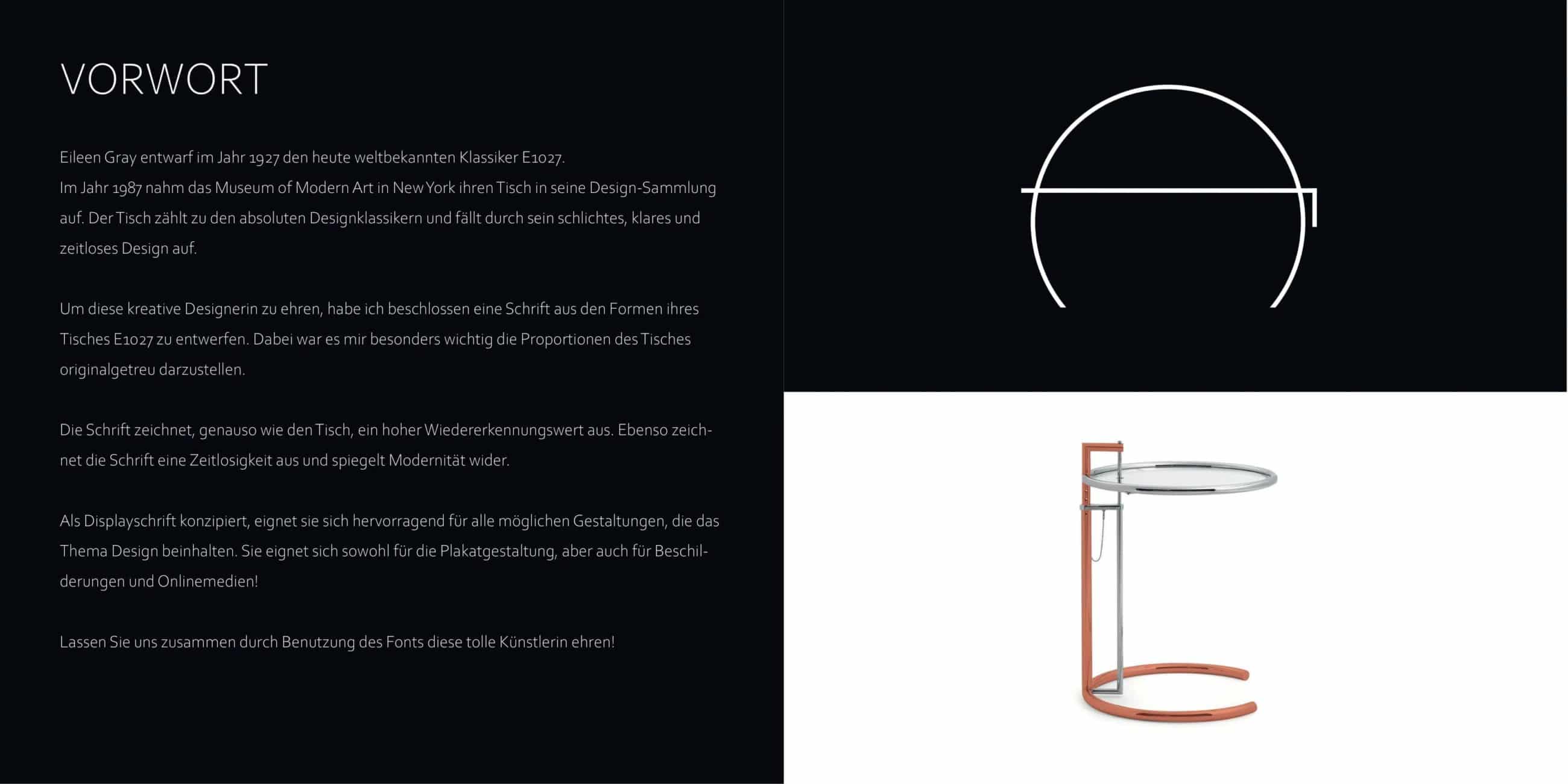 Ein Font ist aus Eileen Grays berühmten Tisch entwickelt, ästhetische Grenzen ausgelotet (Dead Flowers Font), aus Feuer, Kupferrohren, Federn oder Glucose-Candy bis hin zum Night-Club Font (Delirium) ist alles dabei.