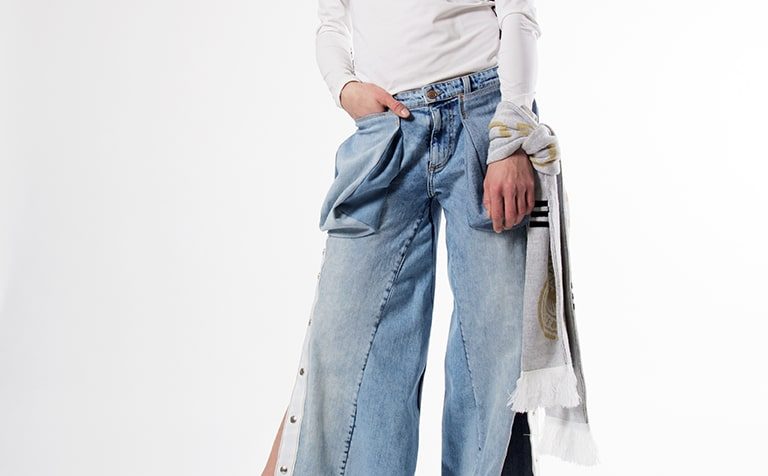 Nach einer Einführung in die Themen Entwurf, Dekonstruktivismus und Recycling in der Mode, soll durch die Anwendung von Upcycling- und Drapage-Technik, Kollagen und Skizzen eigene visuelle Ausdrucksmöglichkeiten entwickelt werden. Durch die Realisation erster Modelle erhalten die Studierenden einerseits grundlegendes Wissen über technische Umsetzbarkeiten; andererseits dienen die gestalterischen Freiheiten der Förderung des individuellen Kreativ-Potenzials und bedeuten zugleich eine Los-Lösung von der traditionellen Definition der Bekleidung. Neben der Fähigkeit zur dreidimensionalen Gestaltung und zur Entwicklung einer eigenen stilistischen Formensprache steht die Auseinandersetzung mit dem Thema Nachhaltigkeit in Bezug auf Mode im Fokus des Entwurfsprojektes. Die Realisation der Modelle erfolgt ausschließlich aus Jeans und T-Shirts, die recycelt werden sollen.