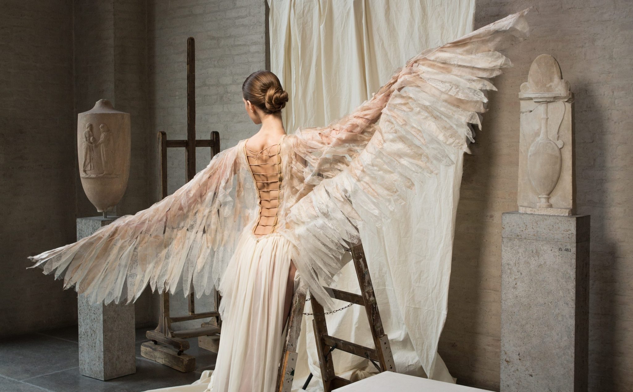 Die Modeinszenierungen für die Ausstellungsexponate übernahm das 4. Semester der AMD-Modejournalisten. In der Bildwelt der Inszenierungen sollte Tradition (antike Skulpturen), Modernität (textiles Handwerk und Designer-Outfits) und Innovation (Outfits und Inszenierungen) eine Einheit bilden aus Modell, Mode und Motiv. Um den Ort zu achten und ihm zugleich Modernität zu verleihen, wurde auf das Künstleratelier Bezug genommen: mit Schemeln, Leitern und Tüchern sind Verweise auf Werkstätten integriert. Die Accessoires der Inszenierung nehmen sich – mit Ausnahme der Schlange der Medusa – deutlich zurück und wollen keinen stilistischen Gegenpart bieten.