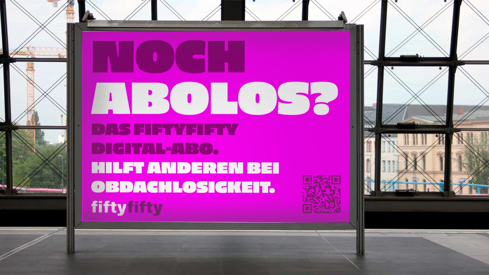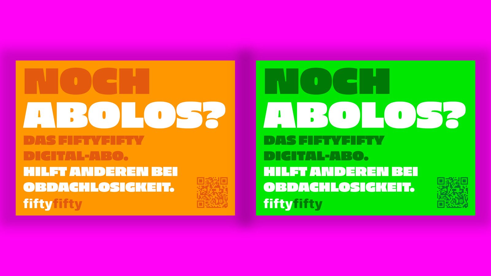 In studiengangübergreifenden Projektkurs haben unsere Studierende eine Plakat-Kampagne für die Düsseldorfer Obdachlosenhilfe fiftyfifty gestaltet. Die Kampagne „Abolos“ soll mit einer neuen Wortschöpfung das Problem der Obdachlosigkeit mit dem Problem der noch fehlenden Digital-Abos der Zeitung verknüpfen und nutzt dabei die phonetische Ähnlichkeit der Begriffe „Abolos“ und „Obdachlos“. Die Kampagne wurde im Stadtgebiet von Düsseldorf veröffentlicht.